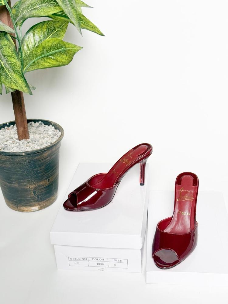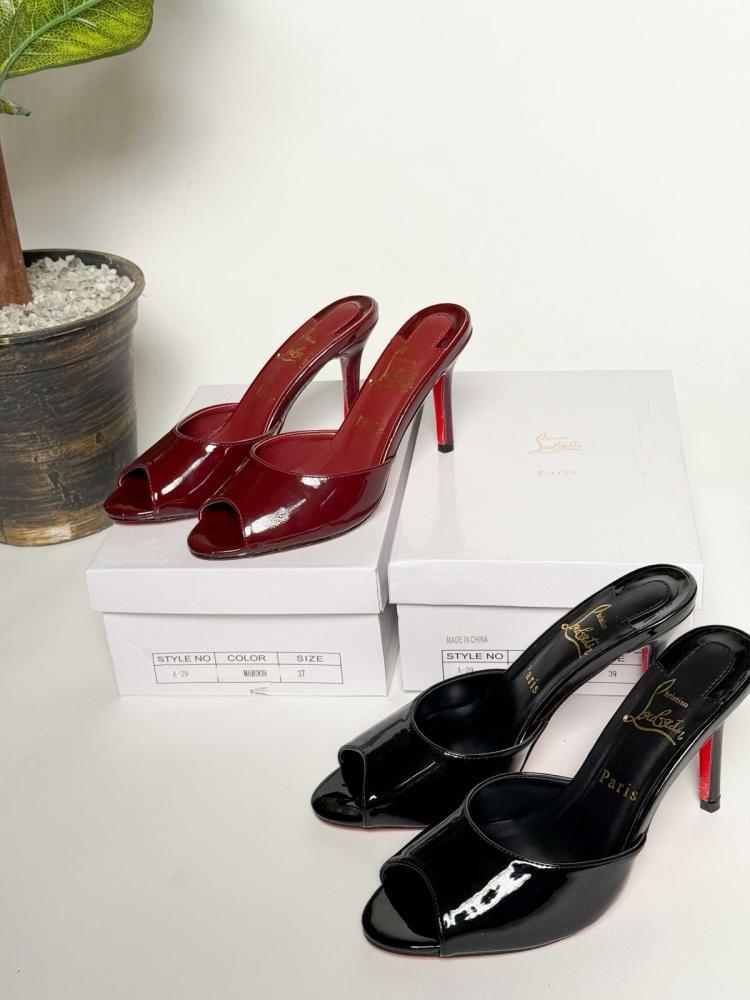 اختاري هيلز Christian Louboutin الفخامة في كل خطوة، متوفرة باللون الأسود والبرغندي للمناسبات الليلية.